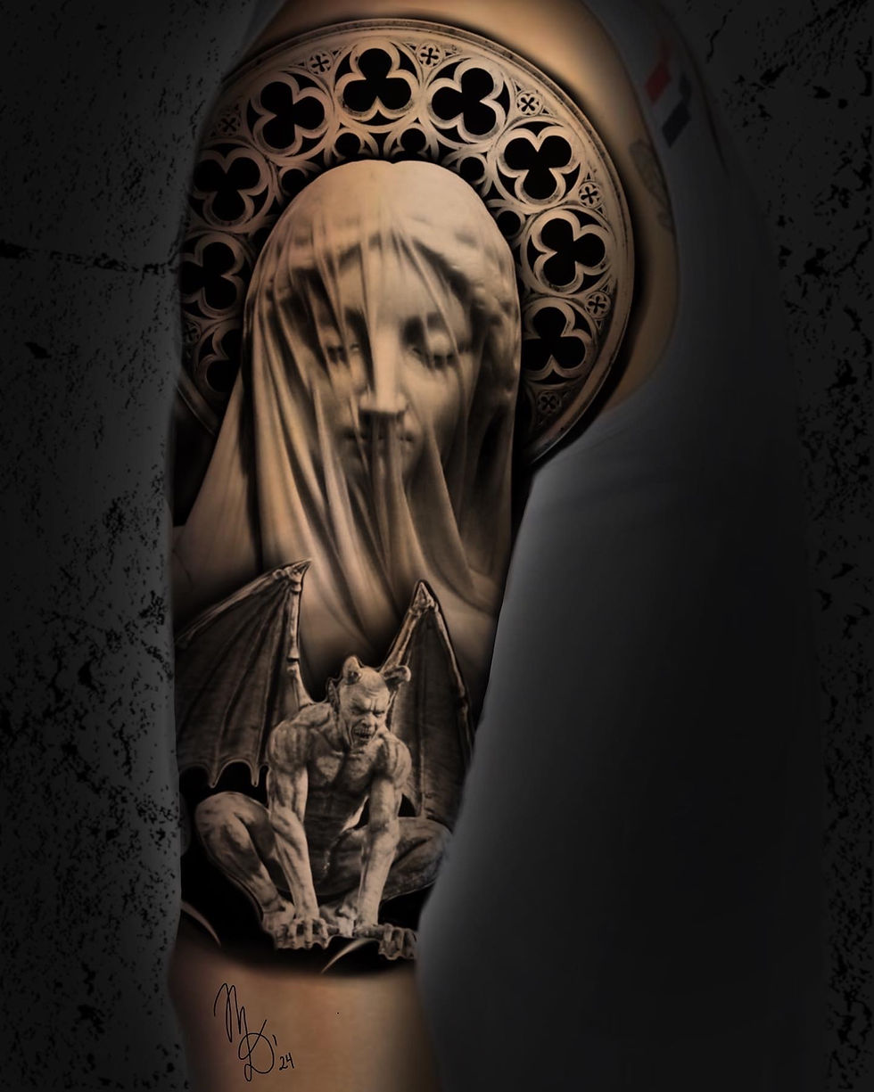 The art of tattoos is specifically my favourite but I also love creating through graphite, coloured pencil, and charcoal.